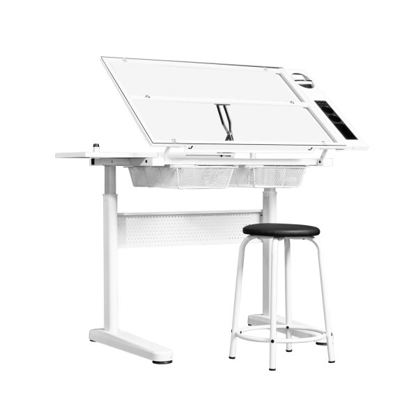 – วัสดุท็อปผลิตจากกระจกเทมเปอร์กลาส ทนทาน สะดวกต่อการวาดรูป หรือเขียนแบบ